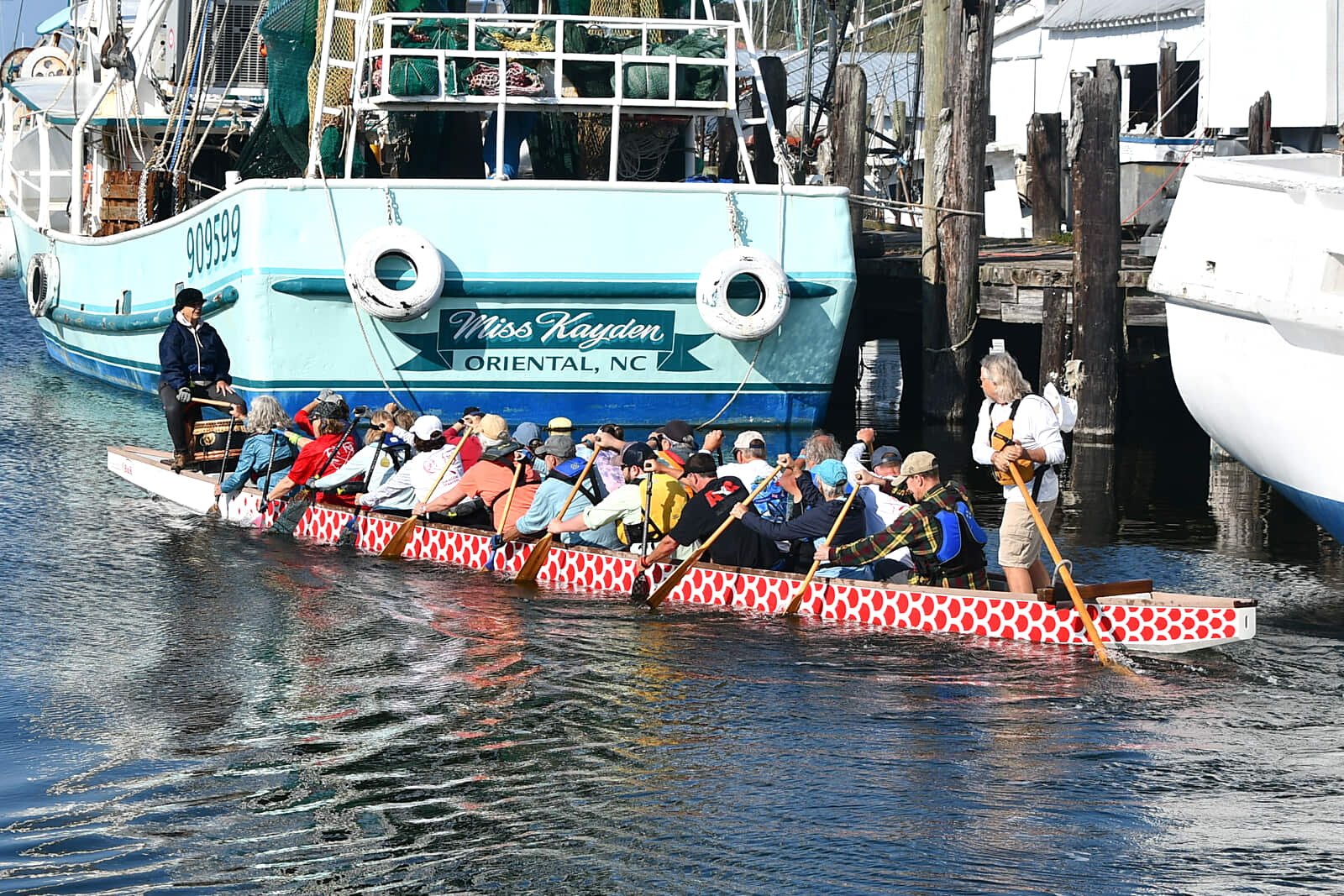 8:21a Nineteen teams. They are coming to Oriental… from all over. There are sailing teams from Mississippi, Texas, California and even Ontario, Canada. All coming to sail in our little town.