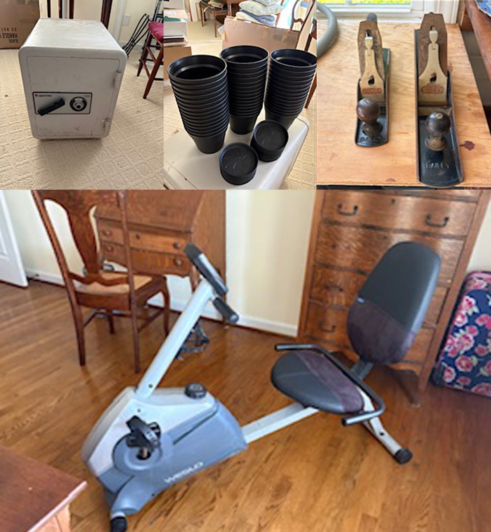 | 8 Ball Mason Jars, pint sizeb. Case of 6 oz. Ball Mason Jars (12). Hand held Electric Mixer. Bamboo Steaming Basket (never used), Pyrex baking pans - large and medium. Glass casserole set - large, medium, small with lids. Moving and need to down size.