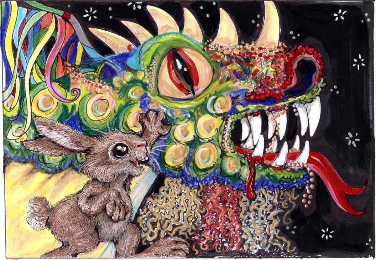 Celebrating the Year Of The Rabbit, Laura Turgeon style. The Rabbit touches the Dragon for good luck…