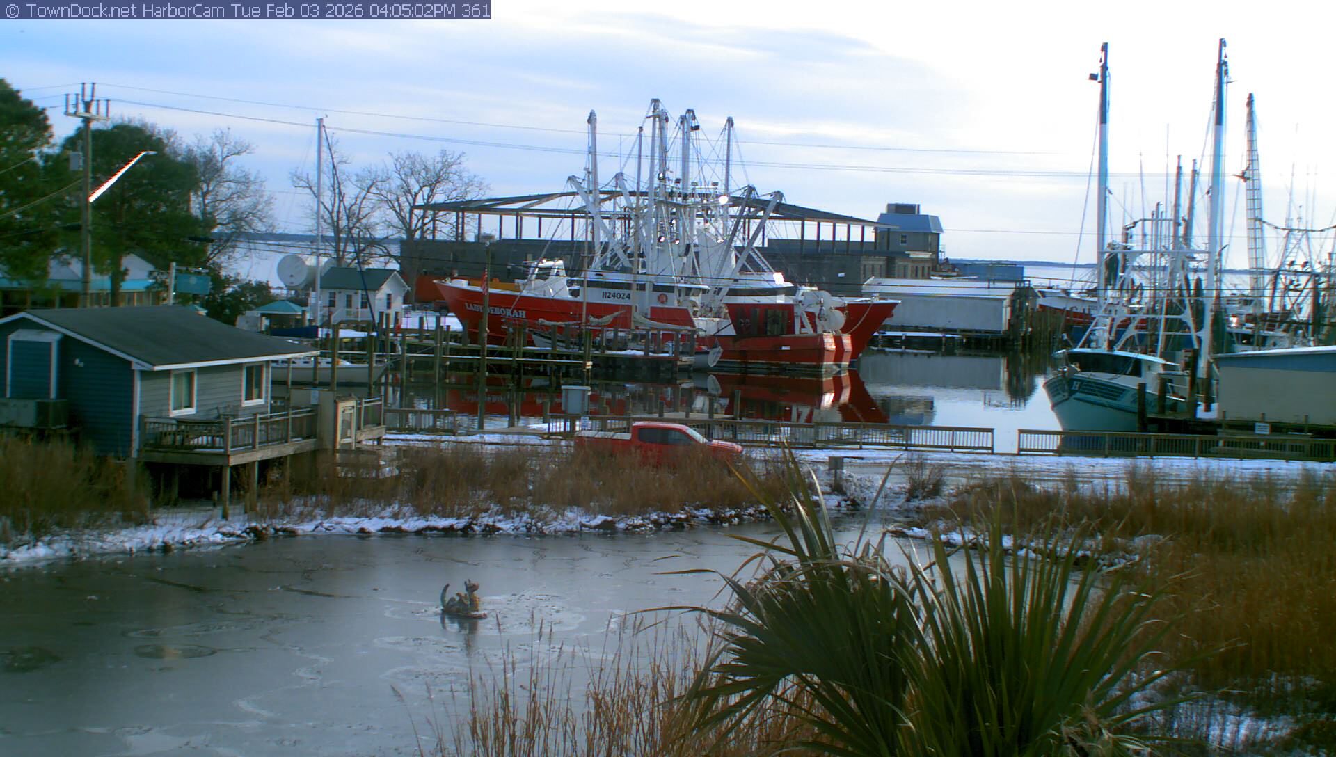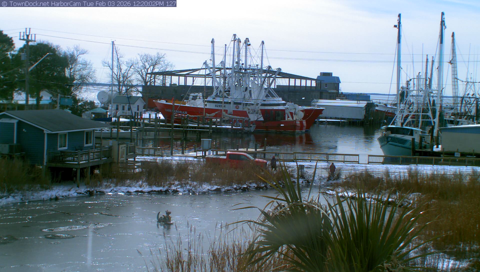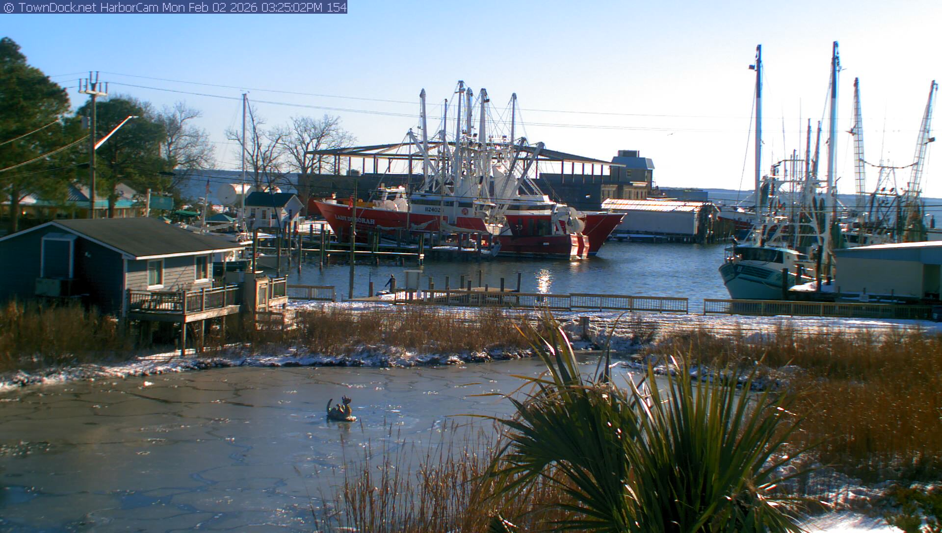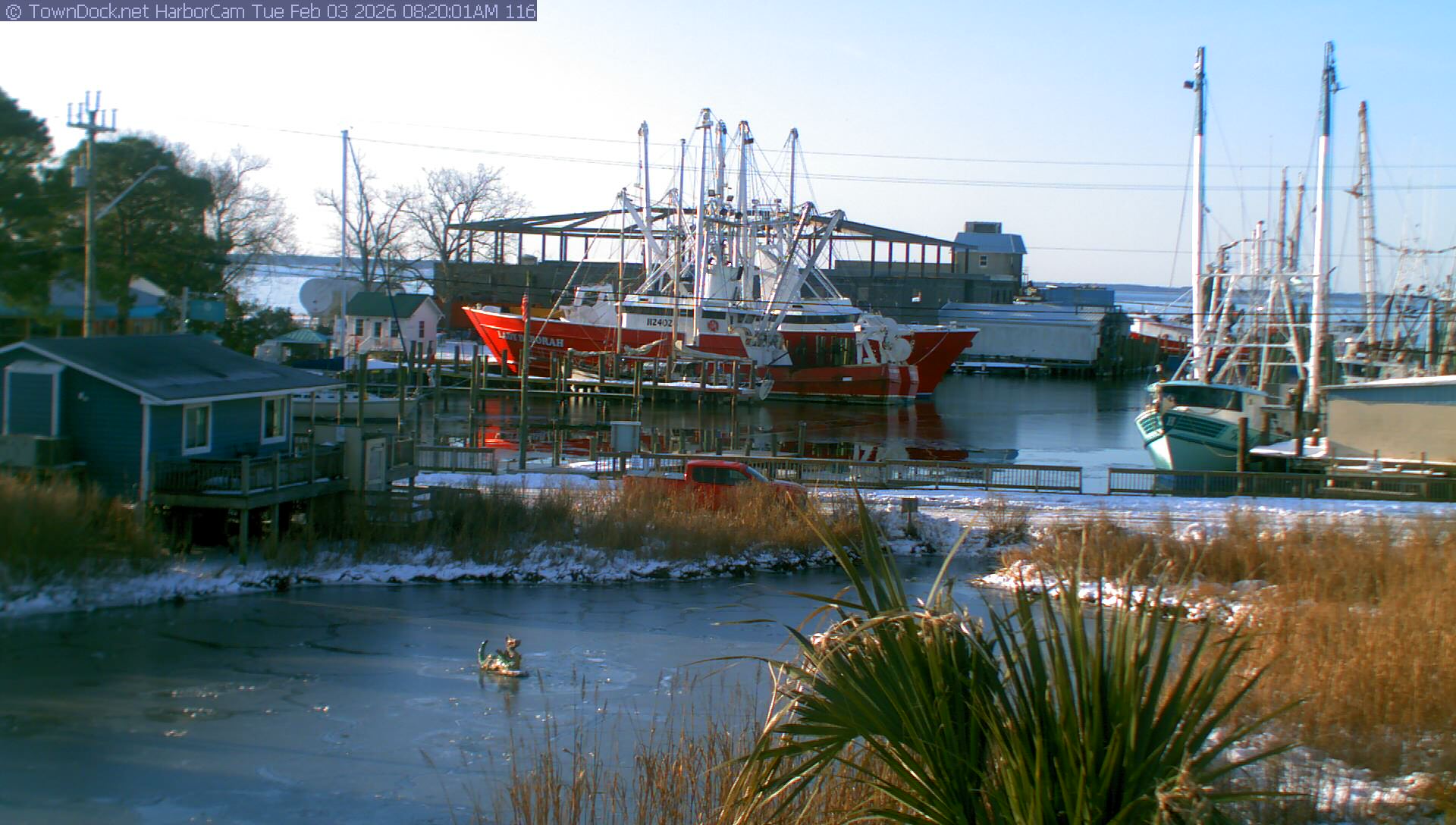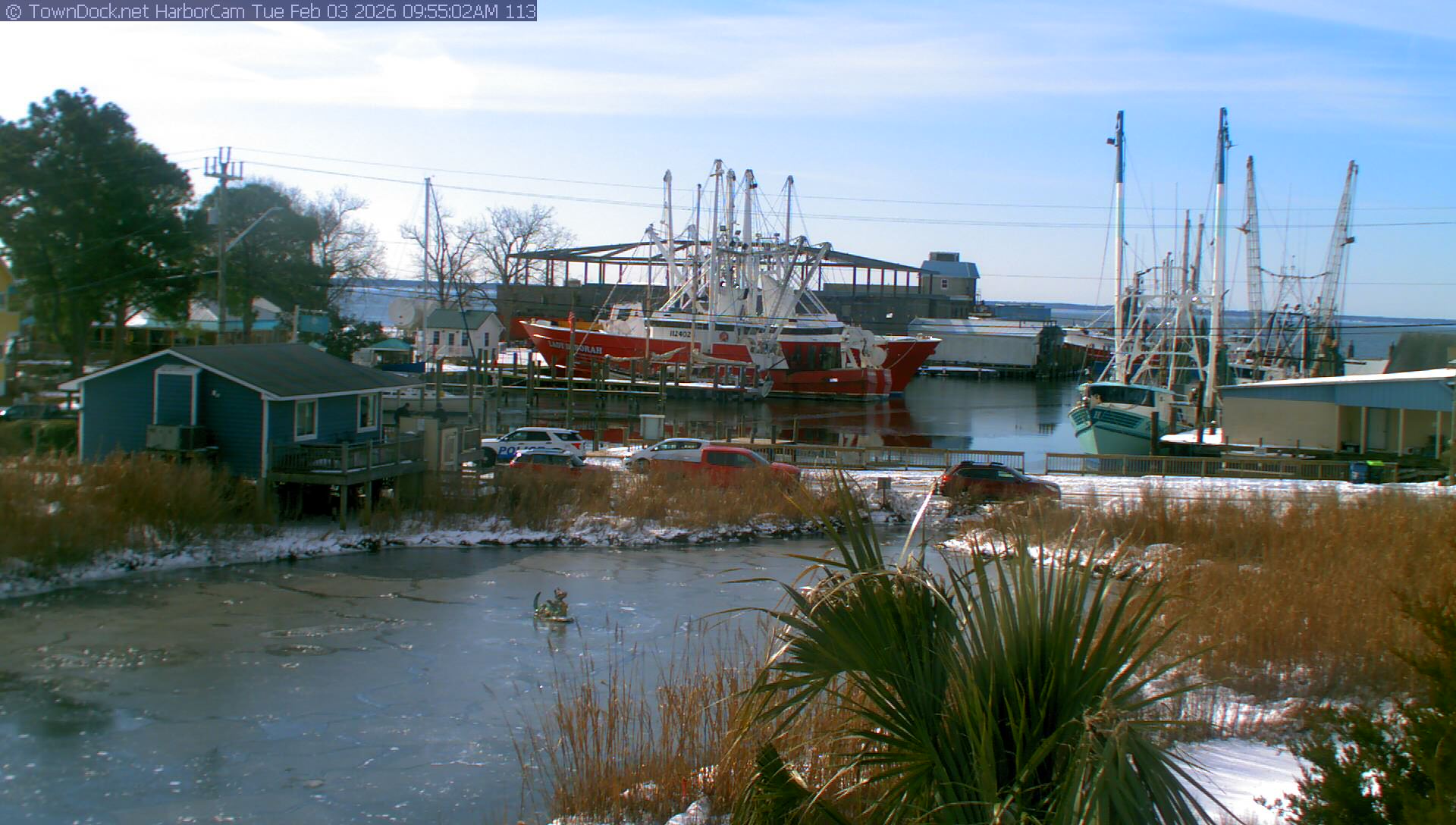 HarborCam takes a new picture of the Oriental harbor every five minutes from dawn til just before dusk. Click on the image to see a larger version. Once you see that larger version, you can click (see arrow at right) to go back in time and see recent photos. Harbor Cam currently takes photos from 6:30am to 5:30pm.