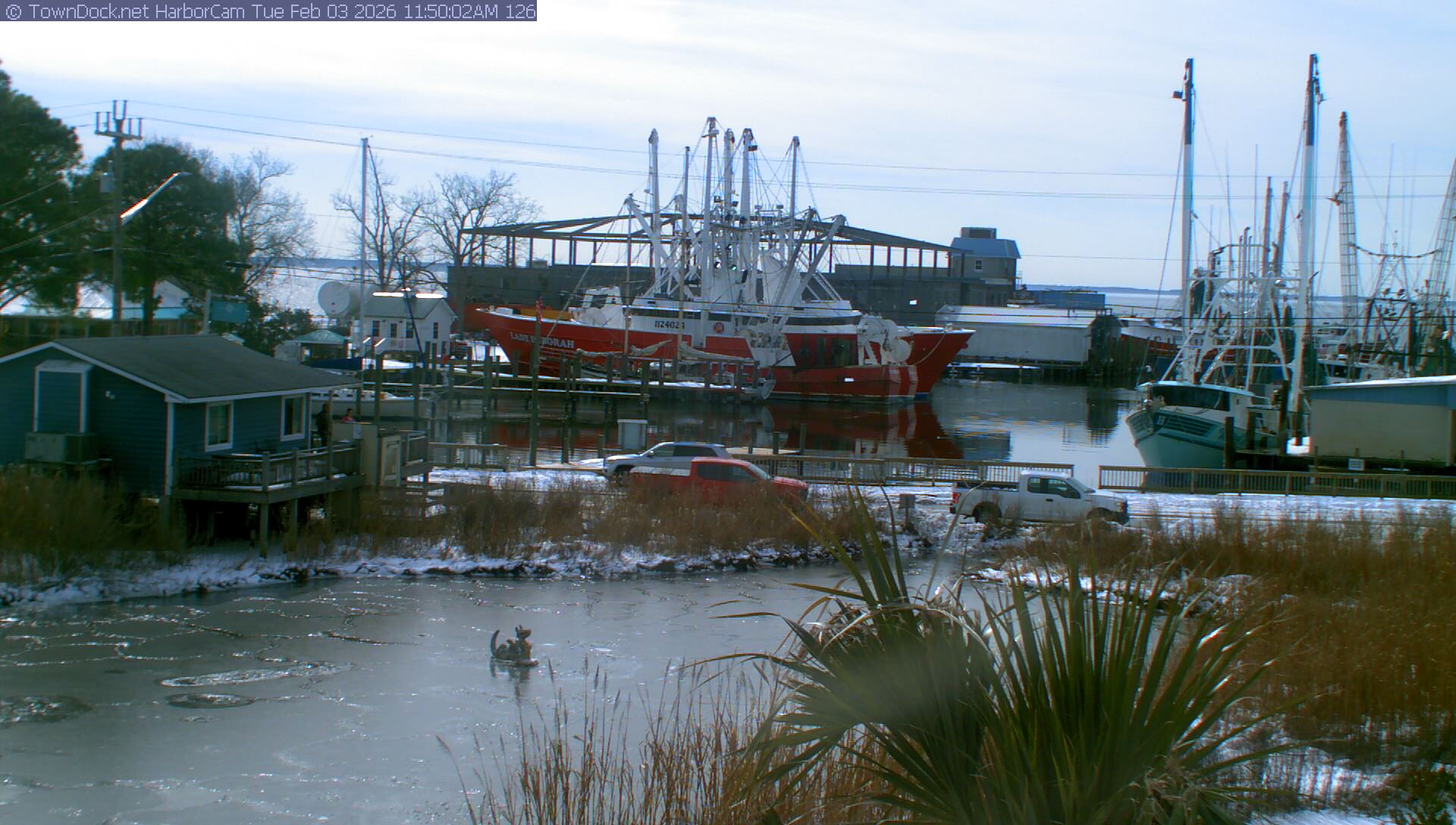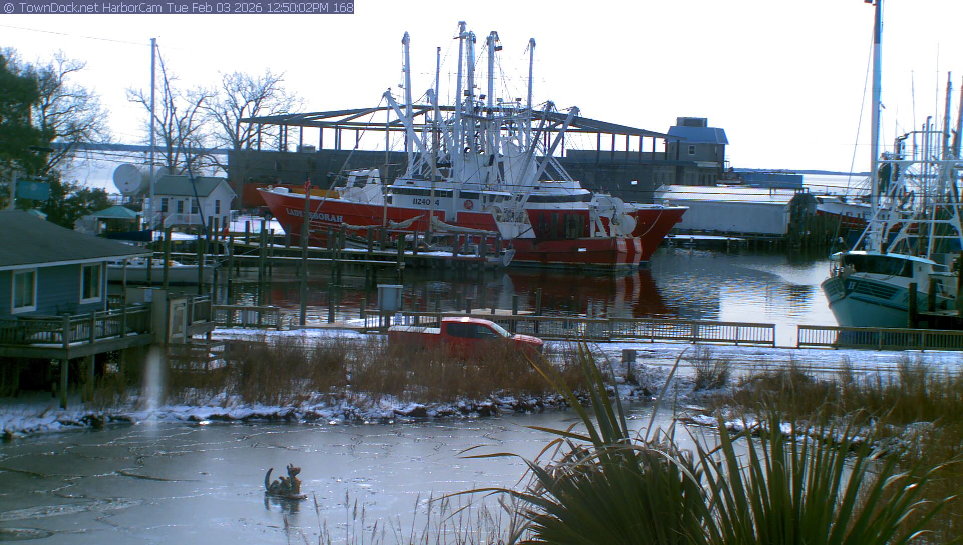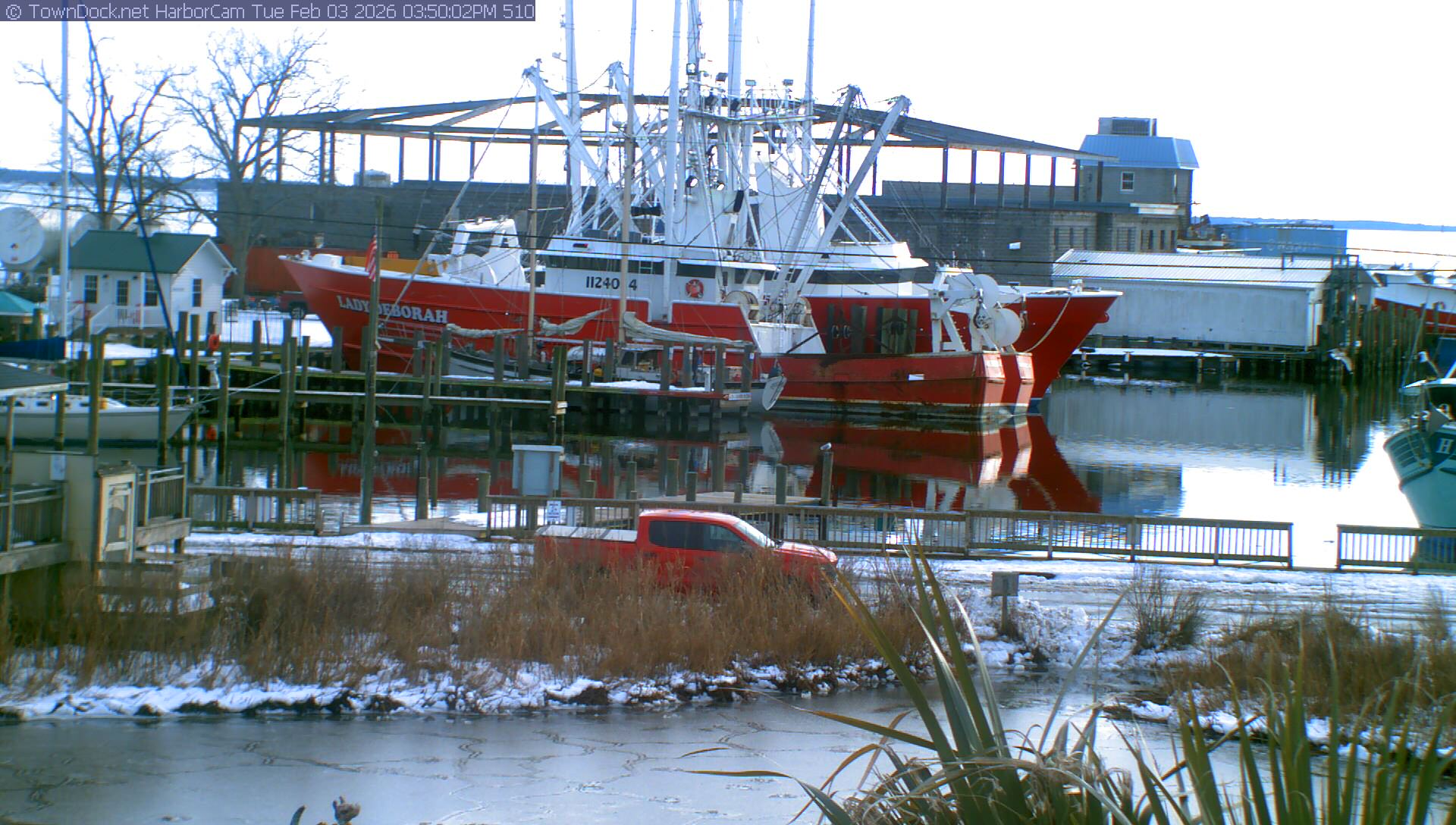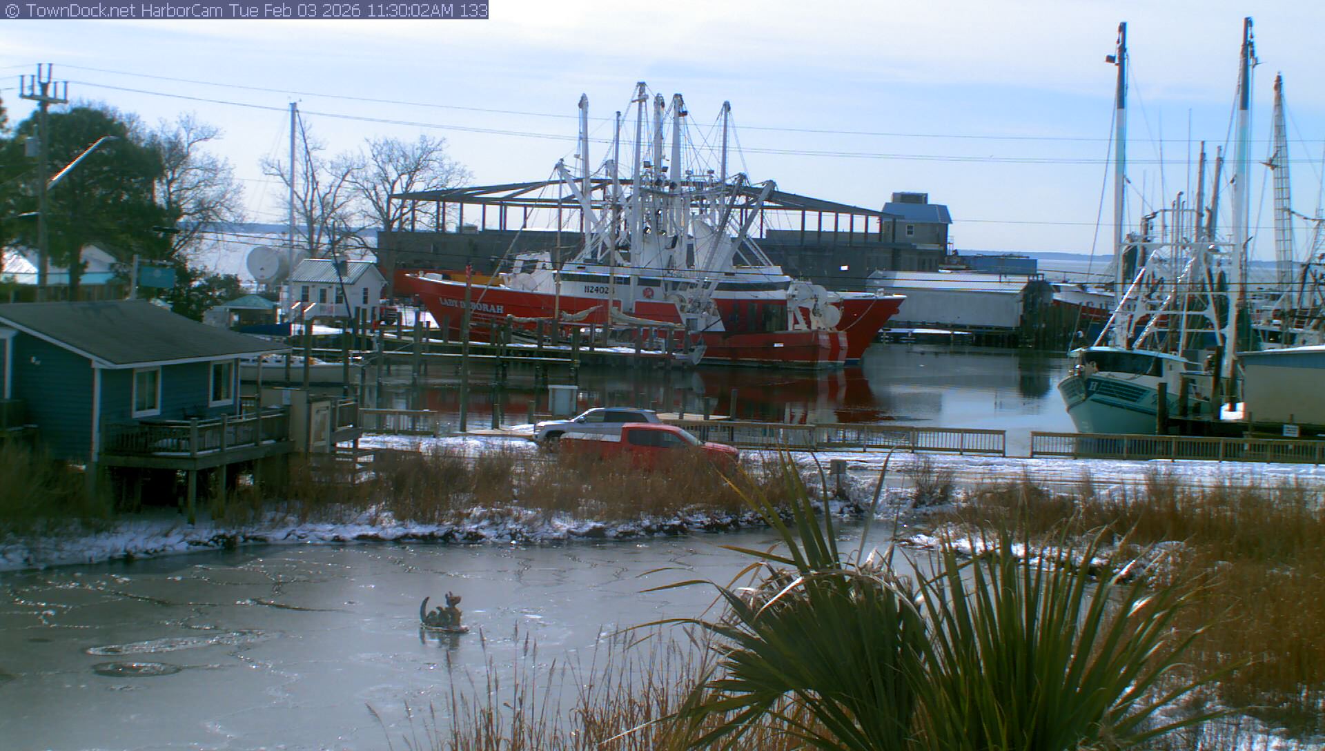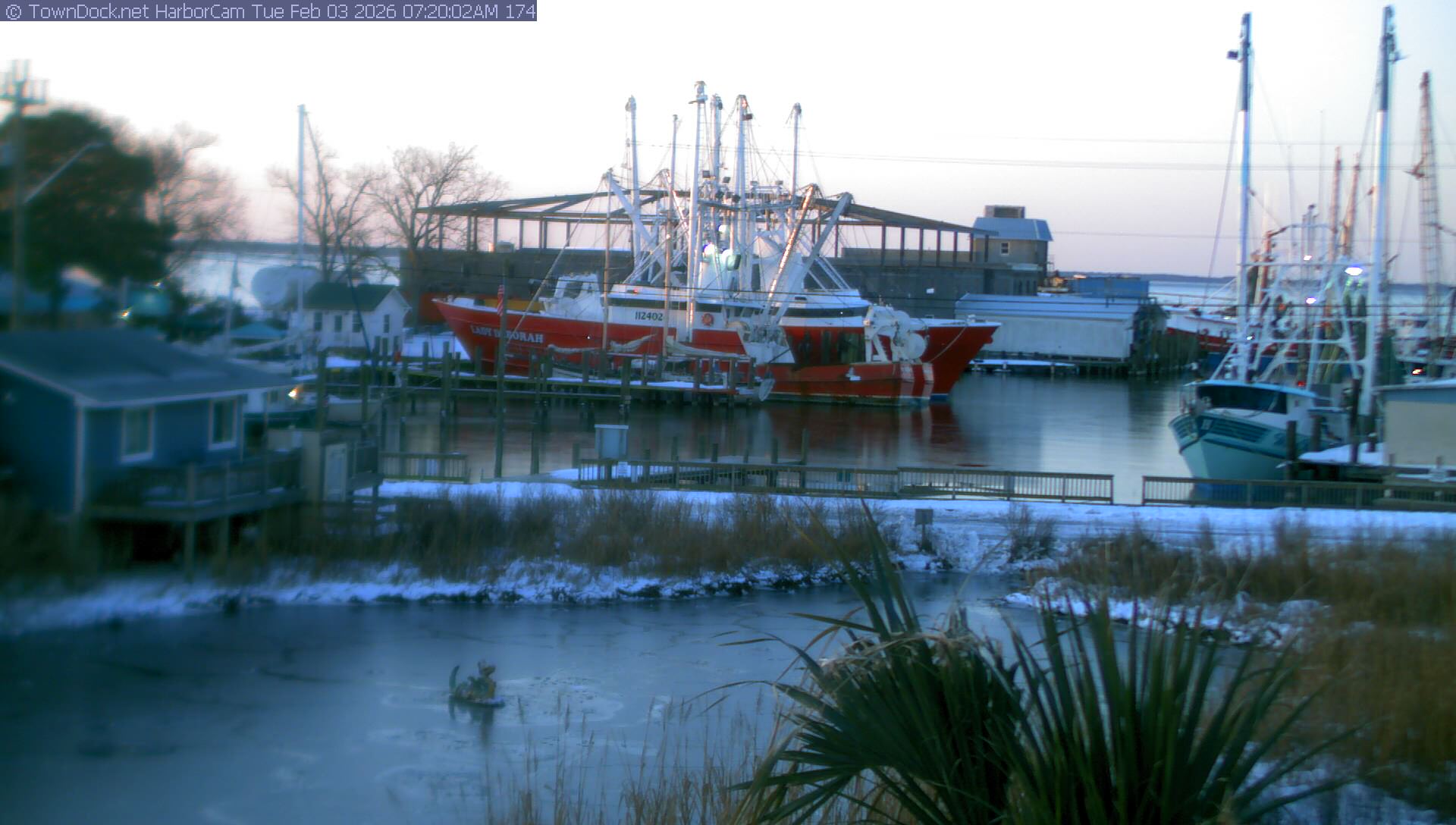 HarborCam takes a new picture of the Oriental harbor every five minutes from dawn til just before dusk. Click on the image to see a larger version. Once you see that larger version, you can click (see arrow at right) to go back in time and see recent photos. Harbor Cam currently takes photos from 6:30am to 5:30pm.