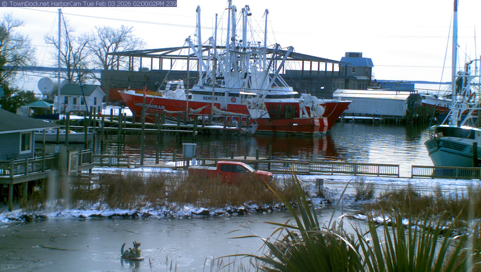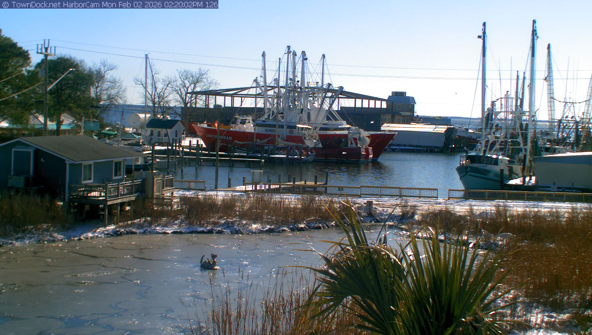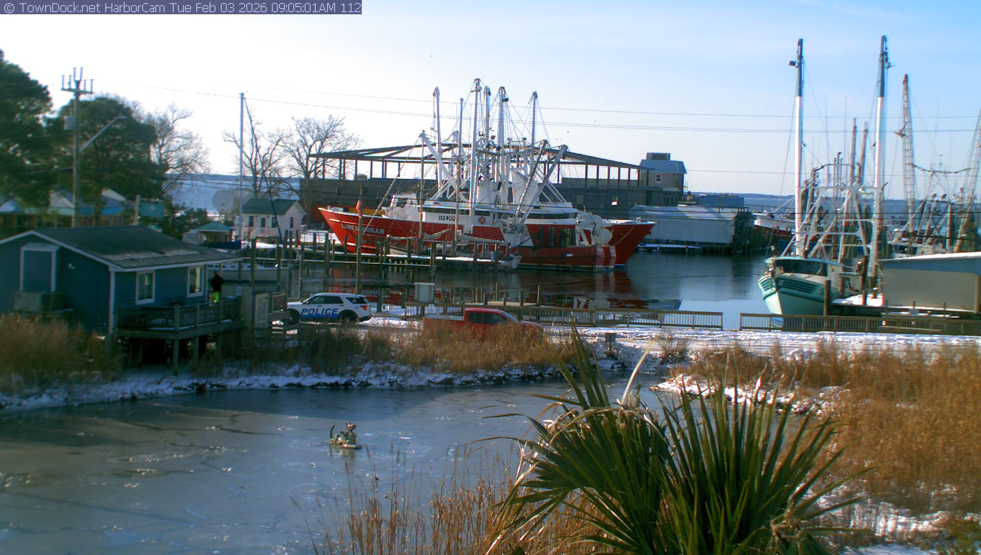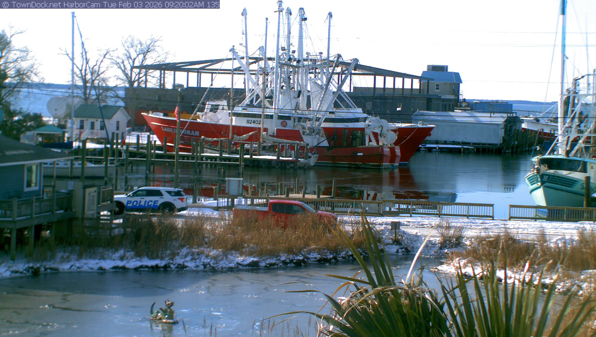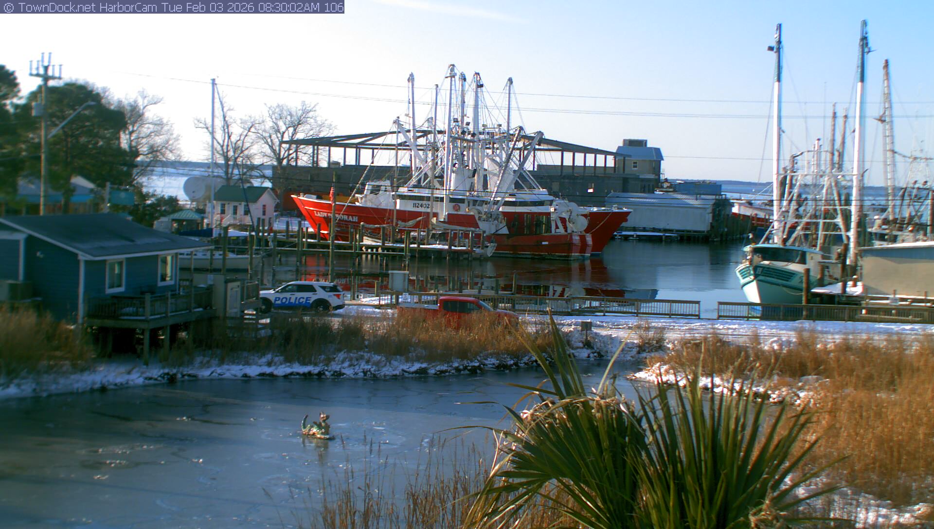 HarborCam takes a new picture of the Oriental harbor every five minutes from dawn til just before dusk. Click on the image to see a larger version. Once you see that larger version, you can click (see arrow at right) to go back in time and see recent photos. Harbor Cam currently takes photos from 6:30am to 5:30pm.