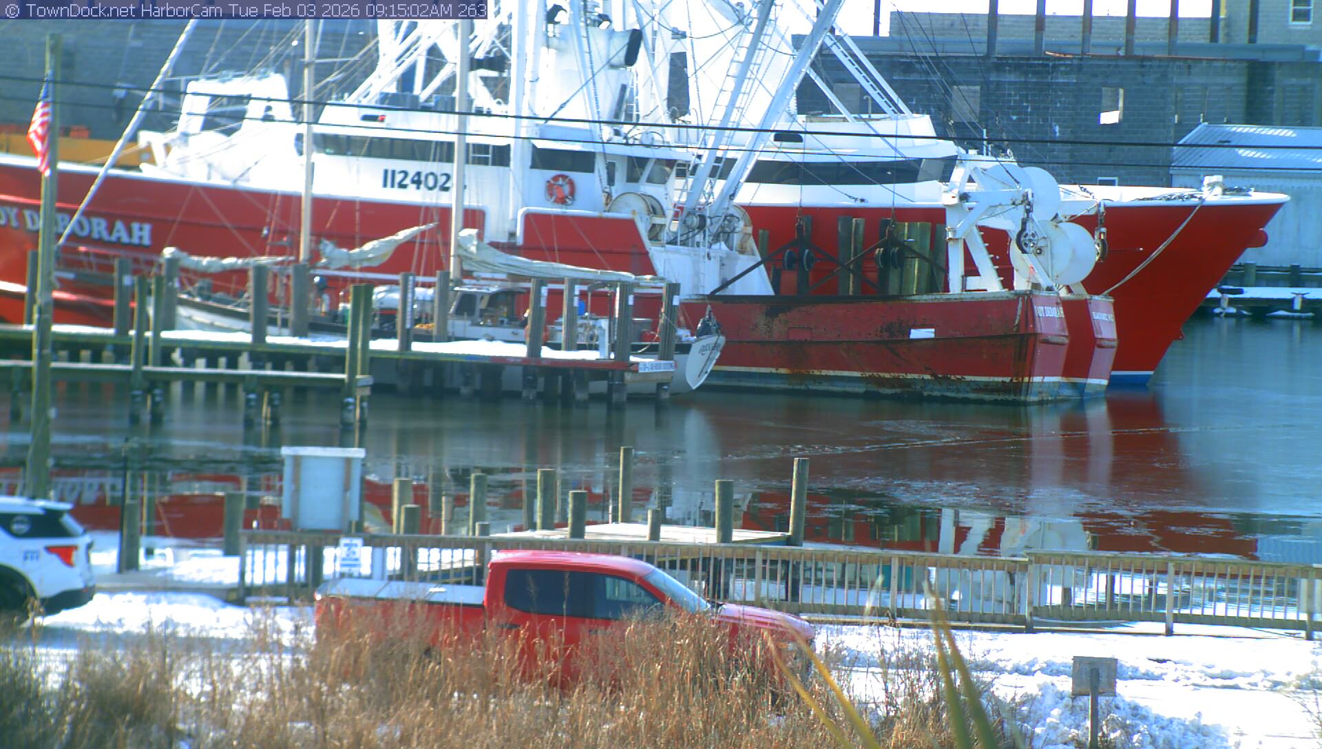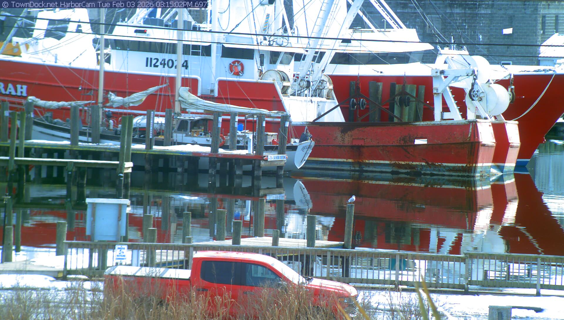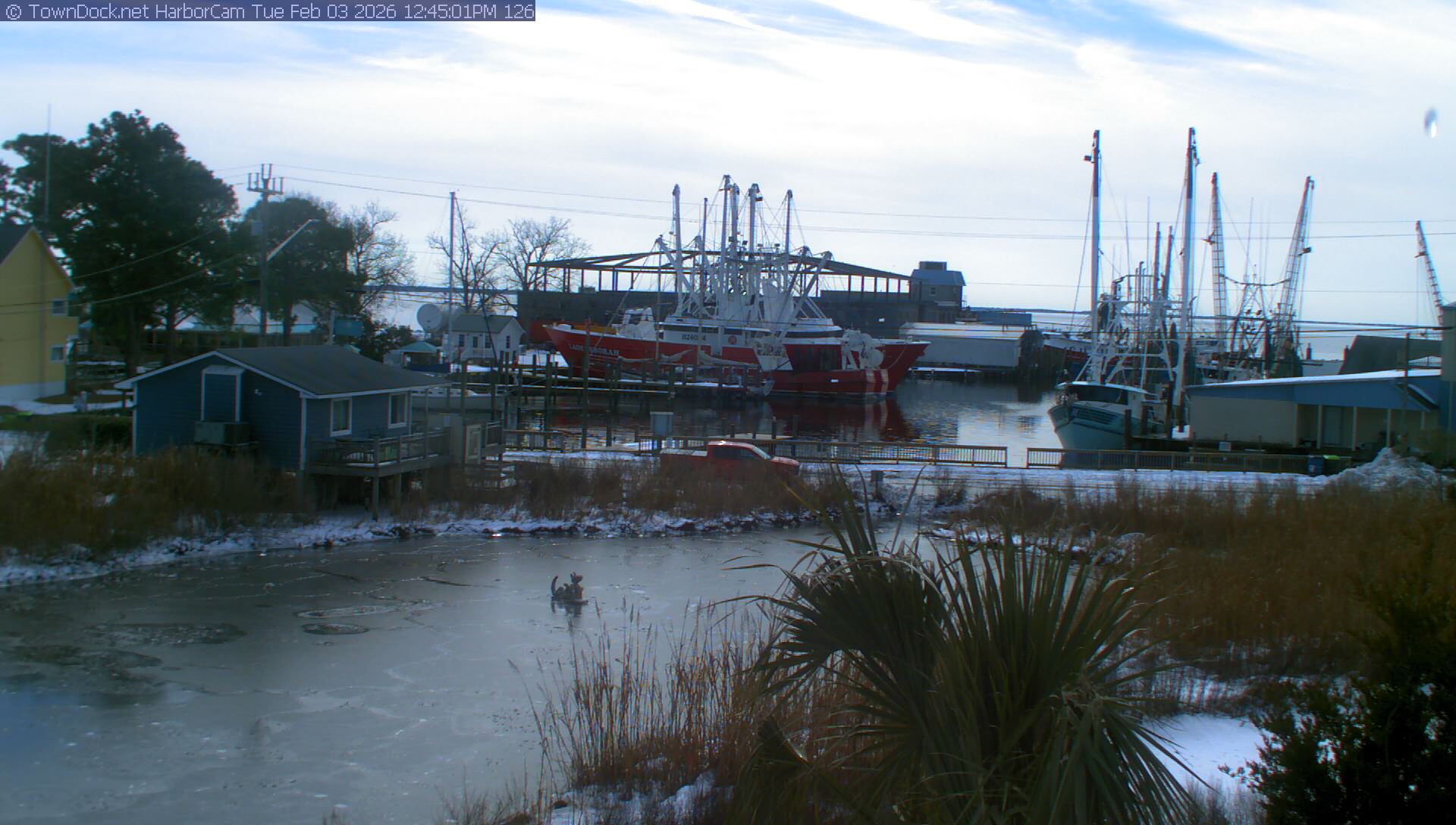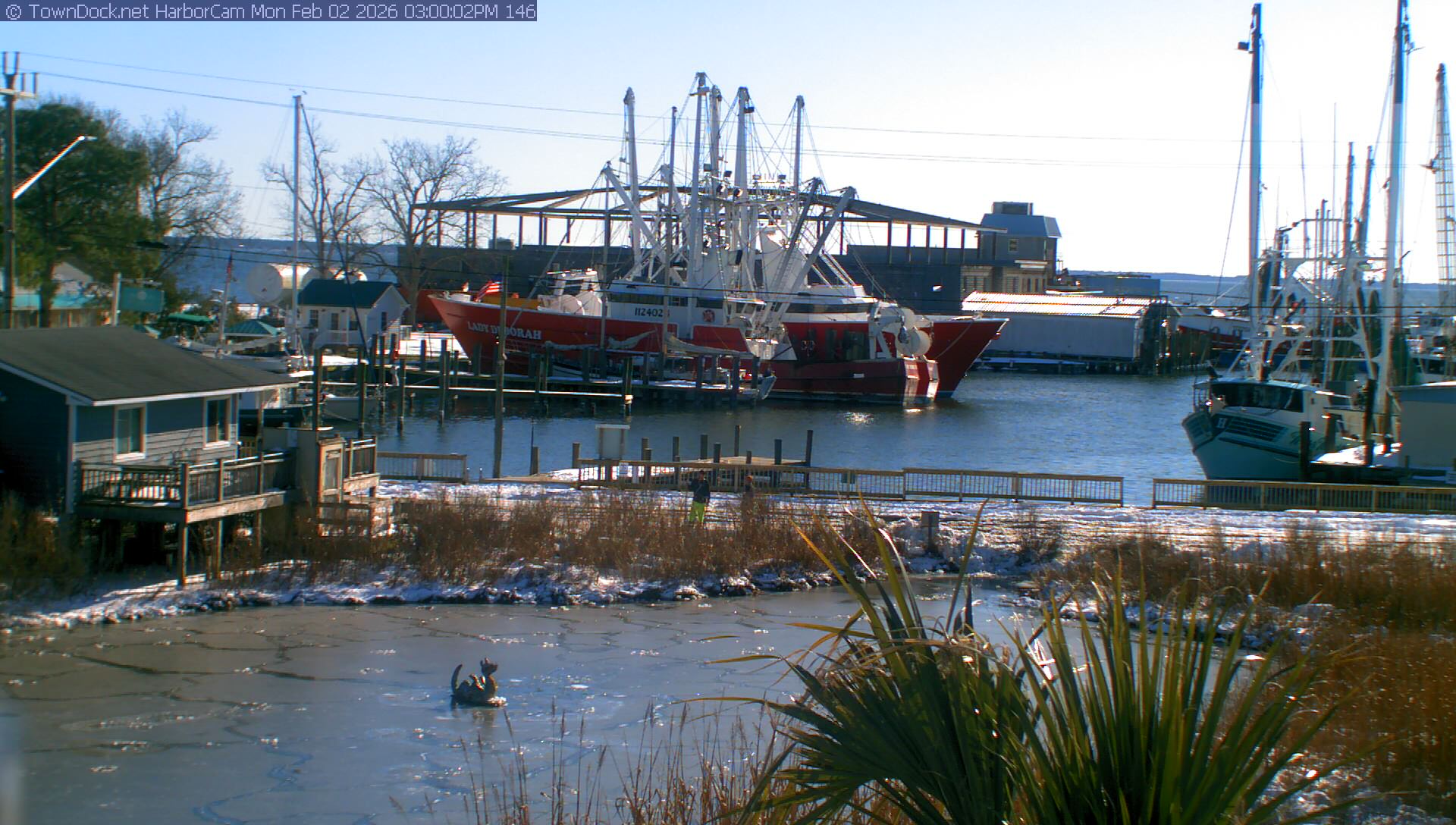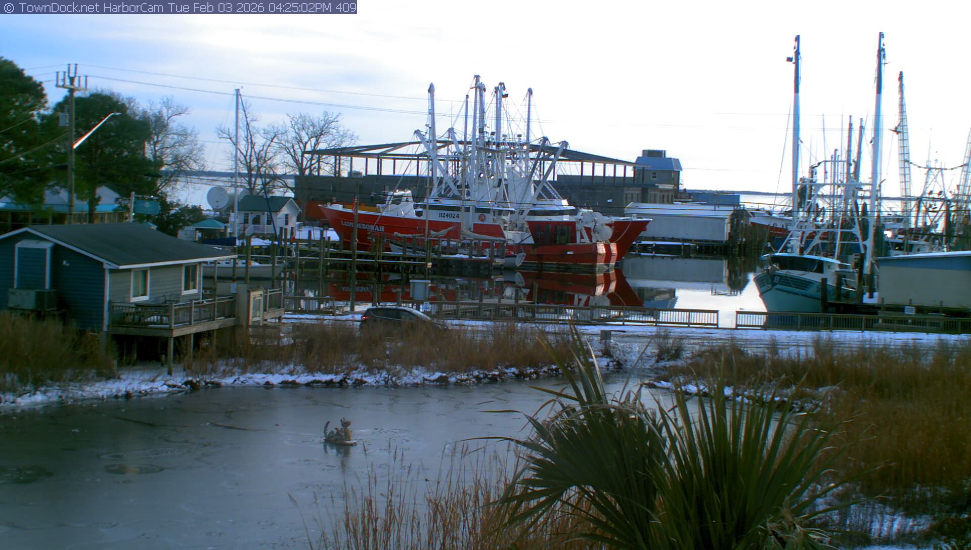 HarborCam takes a new picture of the Oriental harbor every five minutes from dawn til just before dusk. Click on the image to see a larger version. Once you see that larger version, you can click (see arrow at right) to go back in time and see recent photos. Harbor Cam currently takes photos from 6:30am to 5:30pm.