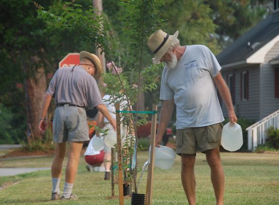 Bob watering a crepe myrtle on Midyette Street