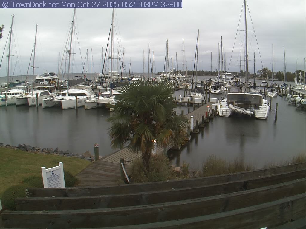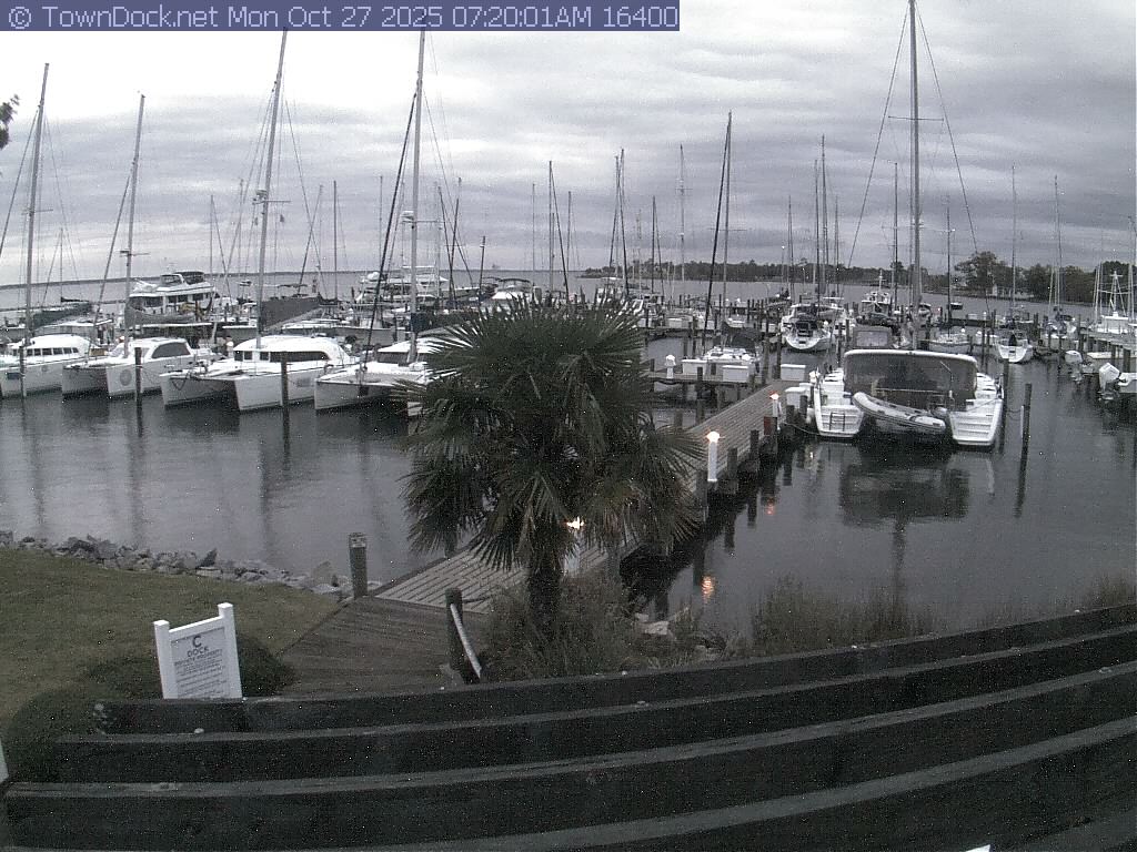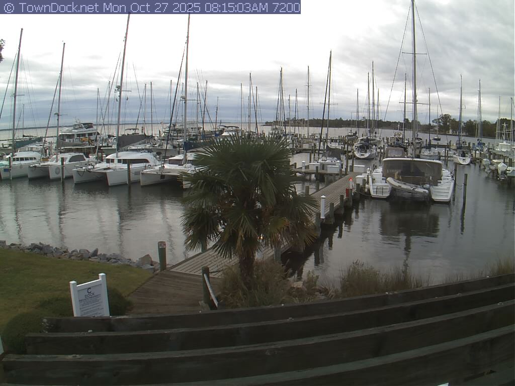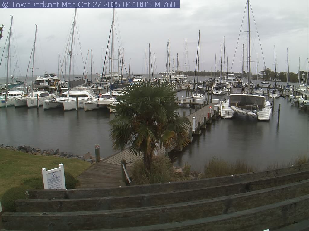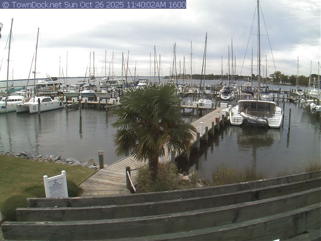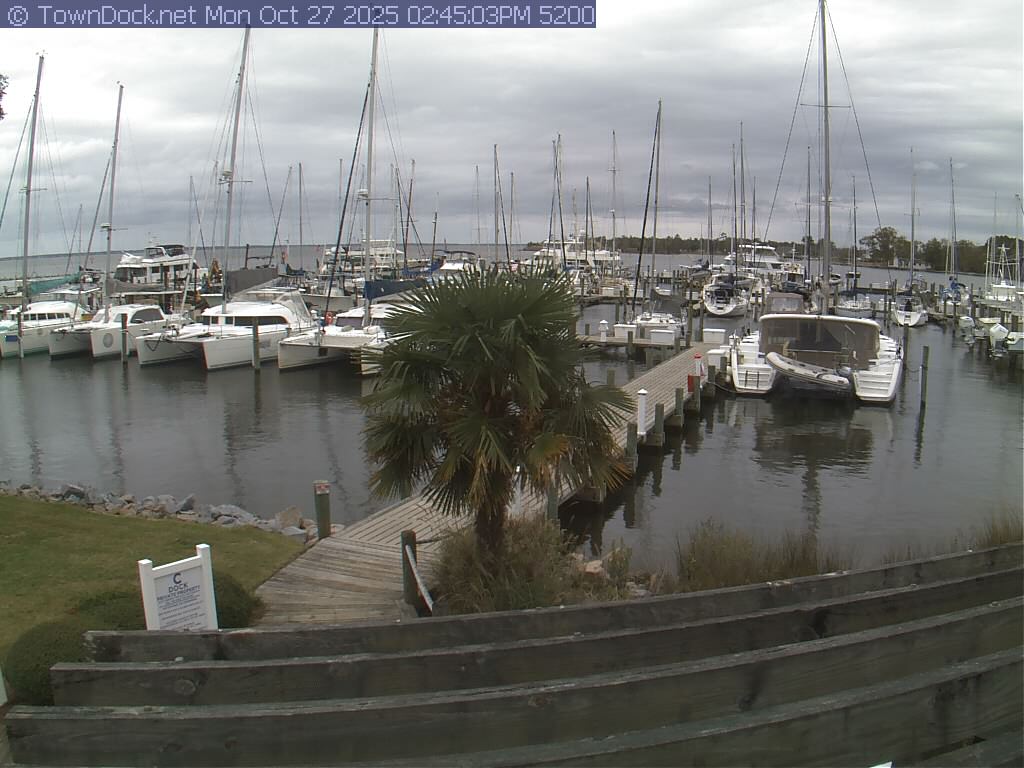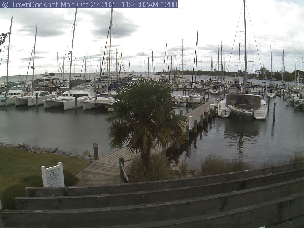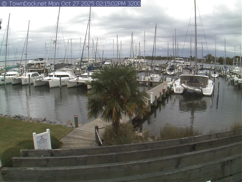 shows Oriental Harbor Village Marina, with the Oriental anchorage & Neuse River in the background. OHVM Cam takes a new picture every five minutes from dawn til just before dusk. Click on the image to see a larger version. Once you see that larger version, you can click (see arrow at right) to go back in time and see recent photos. Harbor Cam currently takes photos from 6:30am to 6:40pm.
