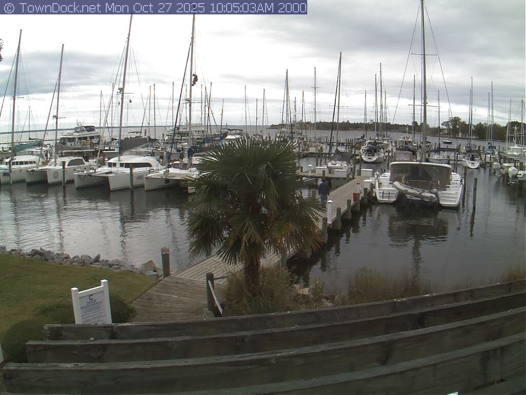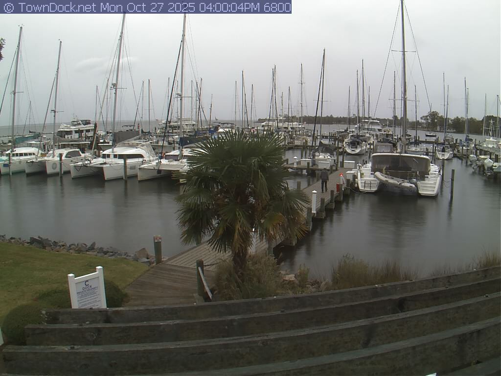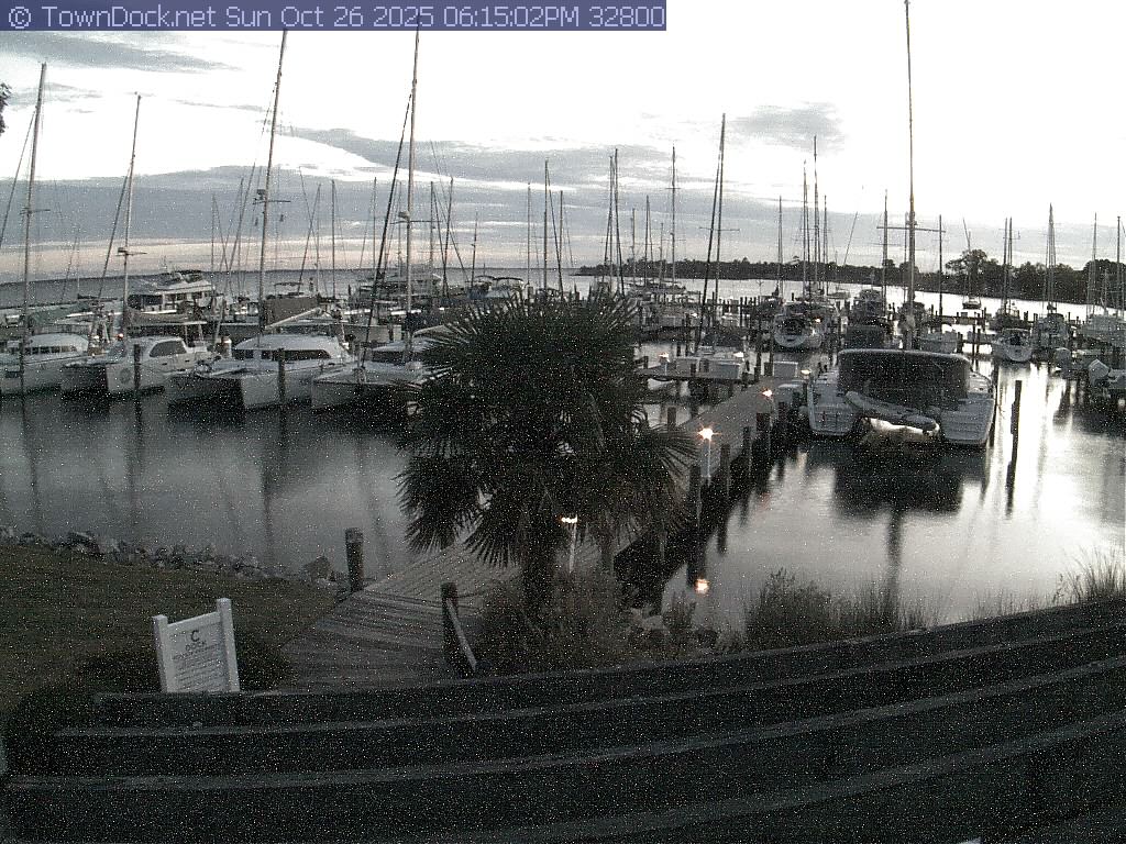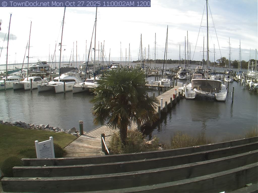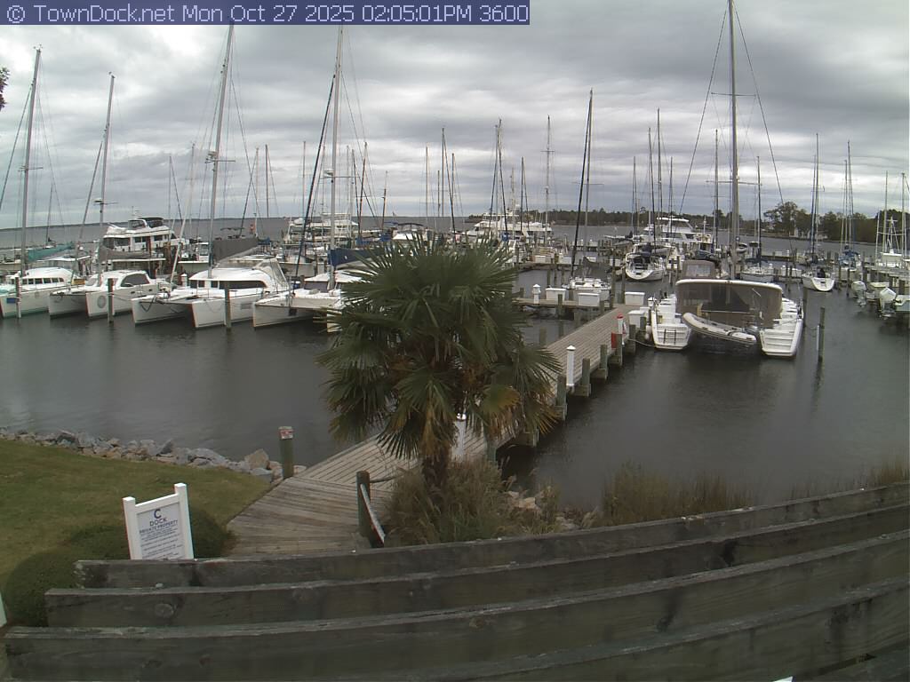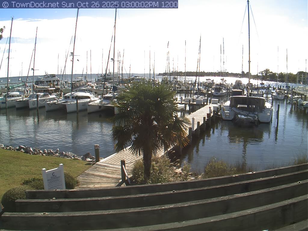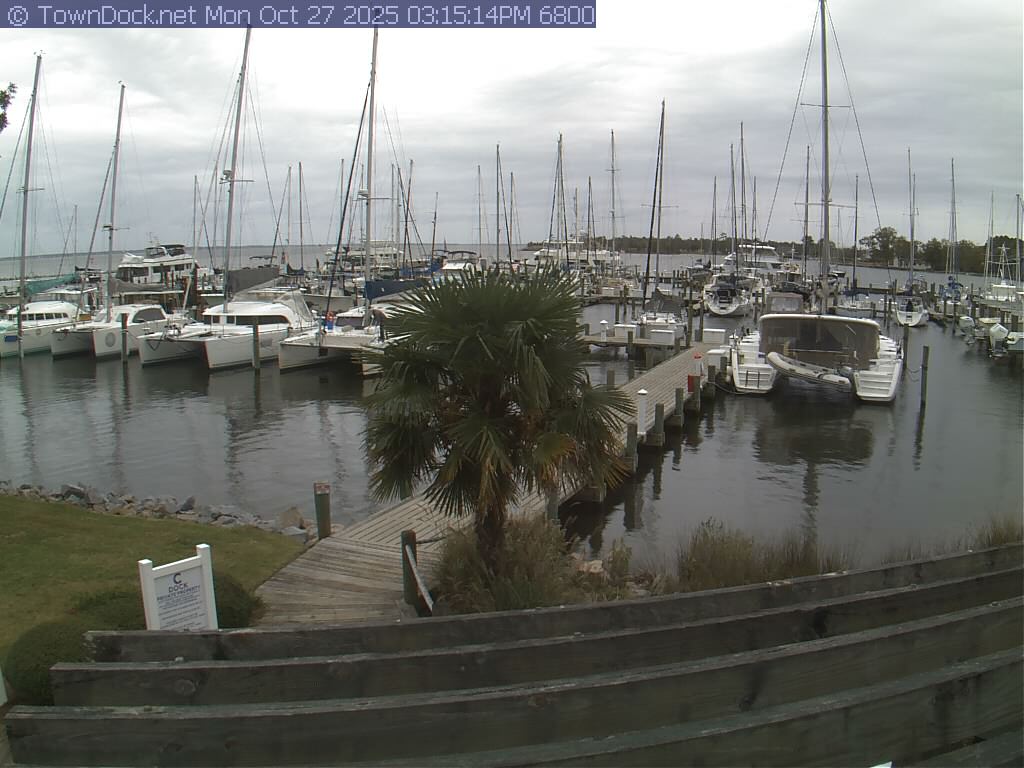 shows Oriental Harbor Village Marina, with the Oriental anchorage & Neuse River in the background. OHVM Cam takes a new picture every five minutes from dawn til just before dusk. Click on the image to see a larger version. Once you see that larger version, you can click (see arrow at right) to go back in time and see recent photos. Harbor Cam currently takes photos from 6:30am to 6:40pm.