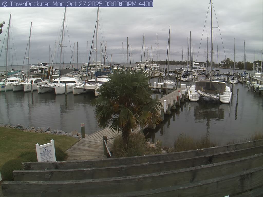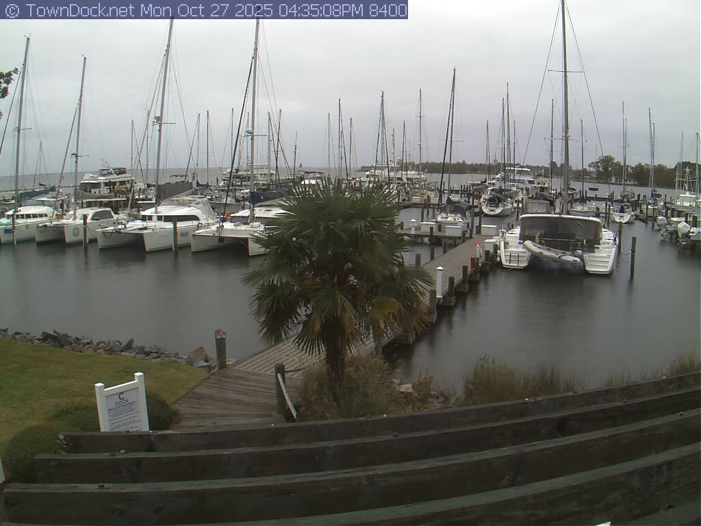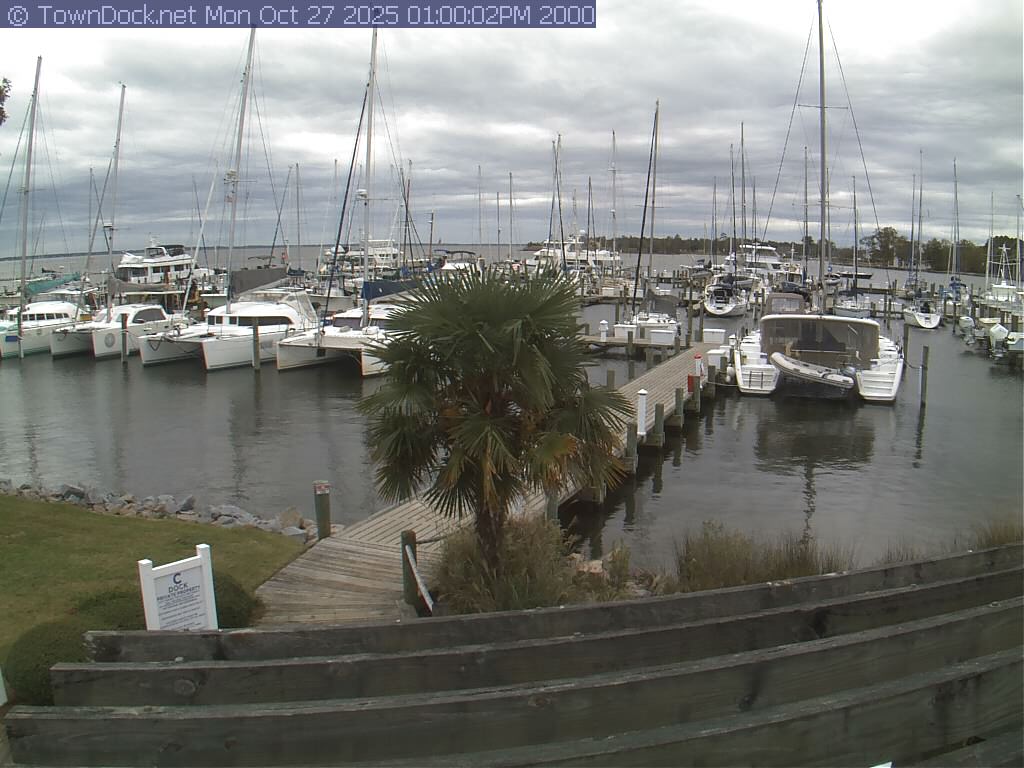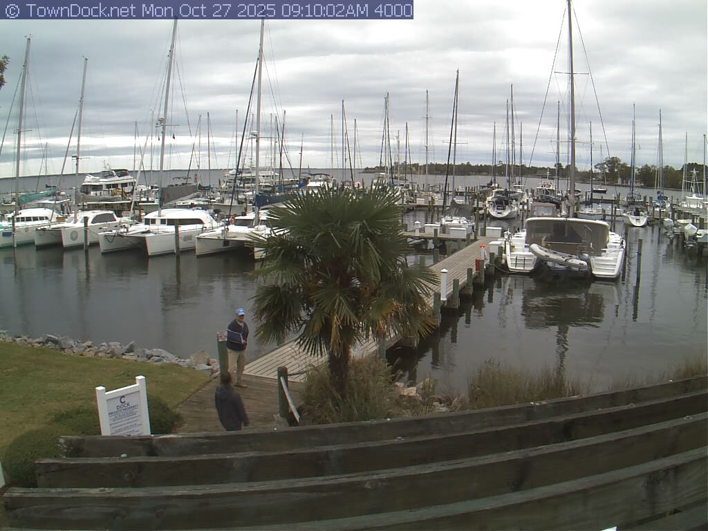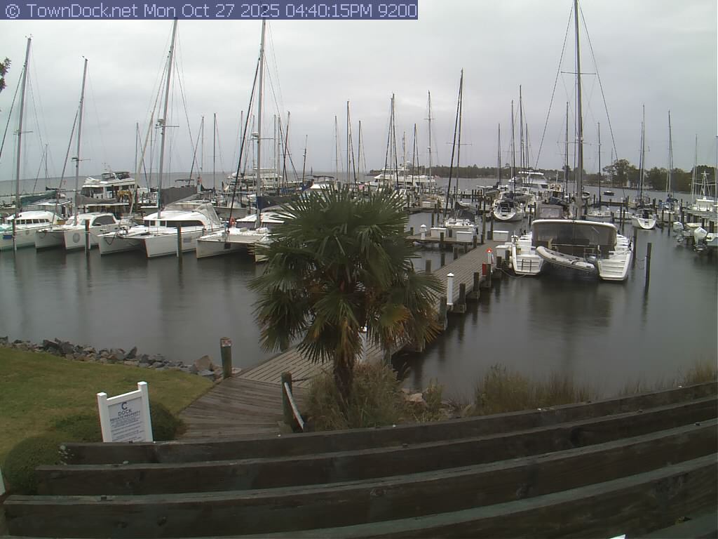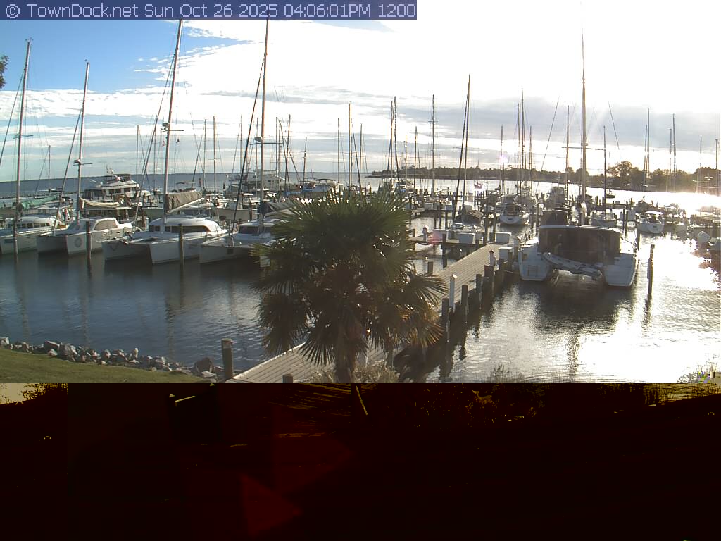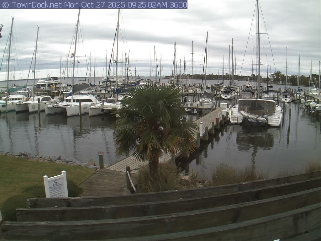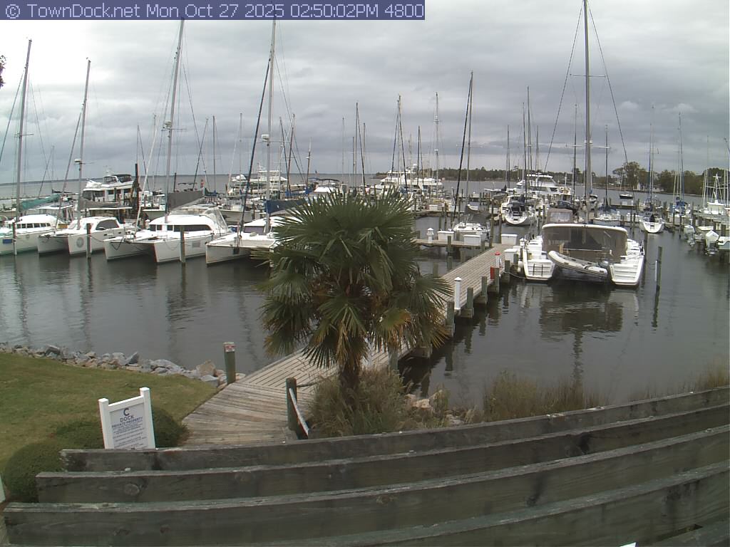 shows Oriental Harbor Village Marina, with the Oriental anchorage & Neuse River in the background. OHVM Cam takes a new picture every five minutes from dawn til just before dusk. Click on the image to see a larger version. Once you see that larger version, you can click (see arrow at right) to go back in time and see recent photos. Harbor Cam currently takes photos from 6:30am to 6:40pm.