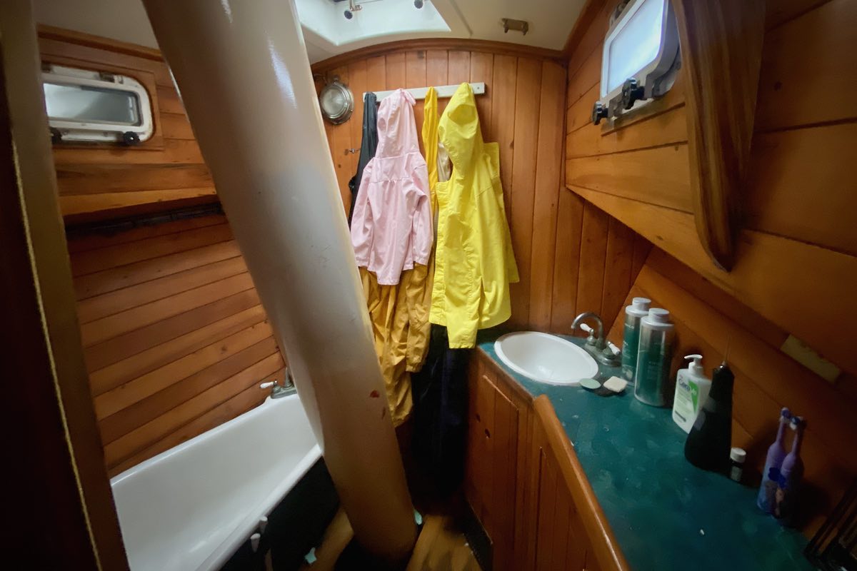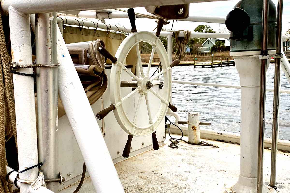 He pointed to everything on the boat that had to be completely repaired – which was nearly everything. Repairs that he was able to do much faster and cheaper than the average cruiser, mechanic, marine tech, boatbuilder, rigger, or shipwright. The schooner is a beautiful vessel with a workboat finish often seen on commercial vessels.