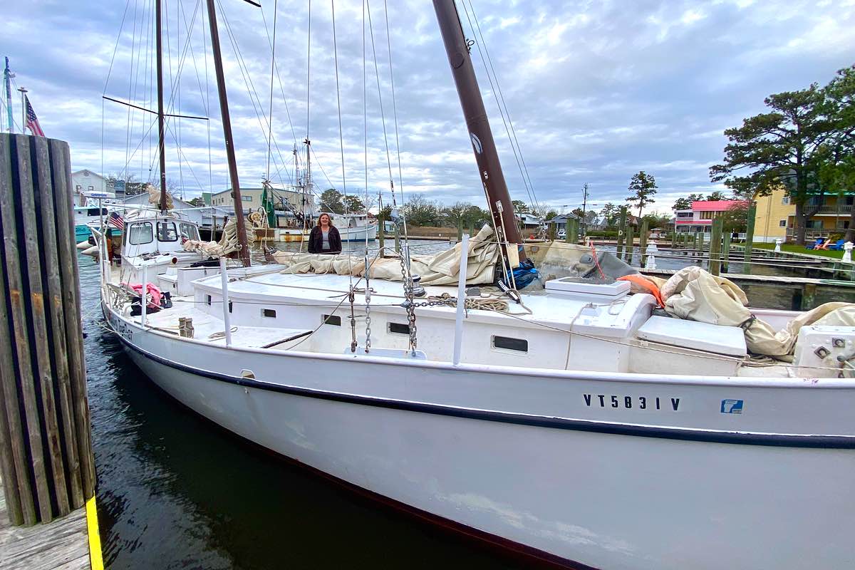 Catharine told them Newell Gillenwater built the schooner with a “full-time, live-aboard family of four in mind.” Newell had been cruising with his wife Catherine and their two daughters when that family pulled into Oriental. Newell wanted to build a bigger boat and decided it was a good place to do so.