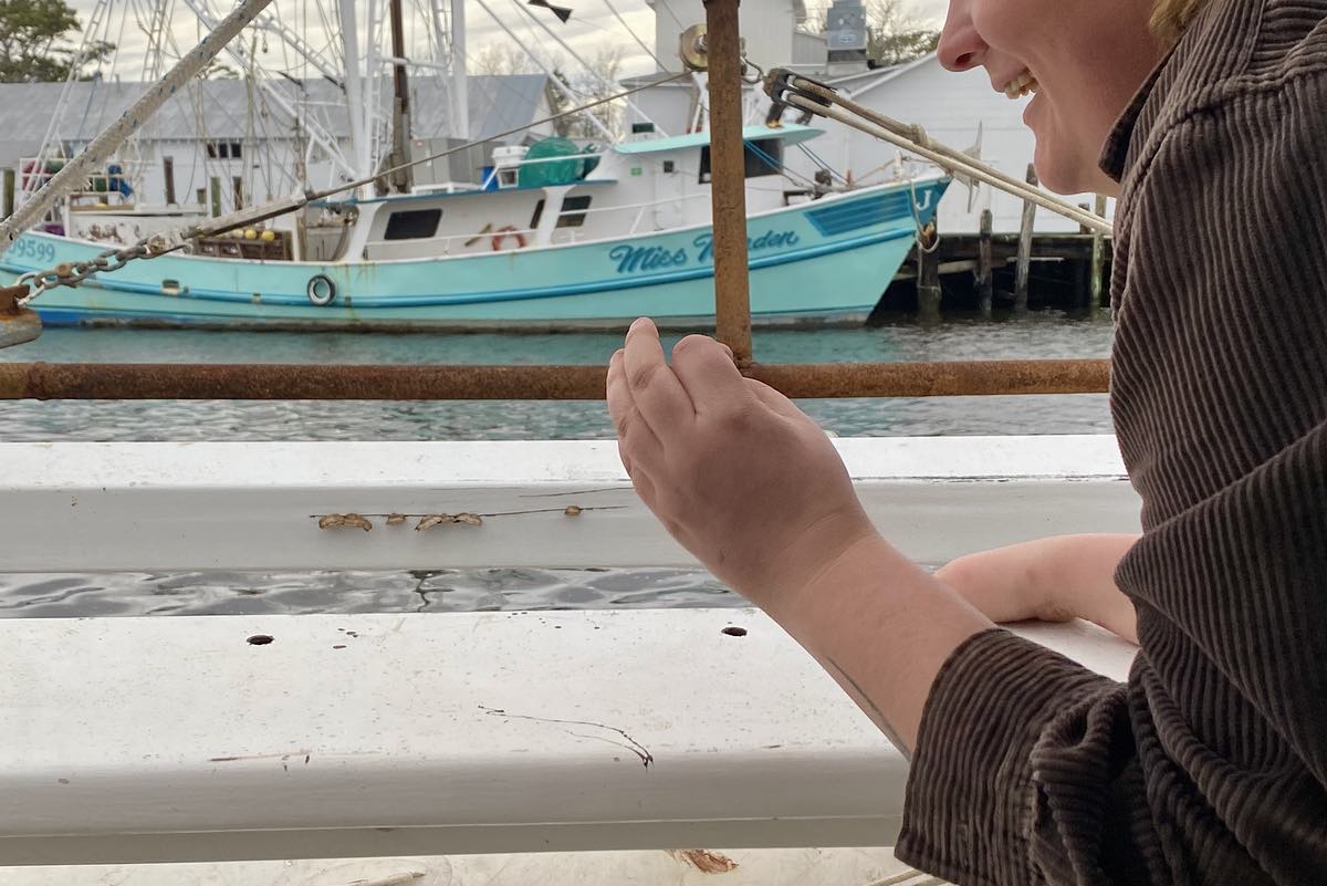 Anna lives aboard and sails full-time with her husband George, a former New England commercial fisherman, and their two young daughters Grace, 9, and Eleanor, 5. Hailing from Cape Cod, the traveling family visited Oriental mid-February, taking up the entire length of the South Ave public dock. Their tall rig and steel hull were at home amongst the harbor’s fishing fleet.