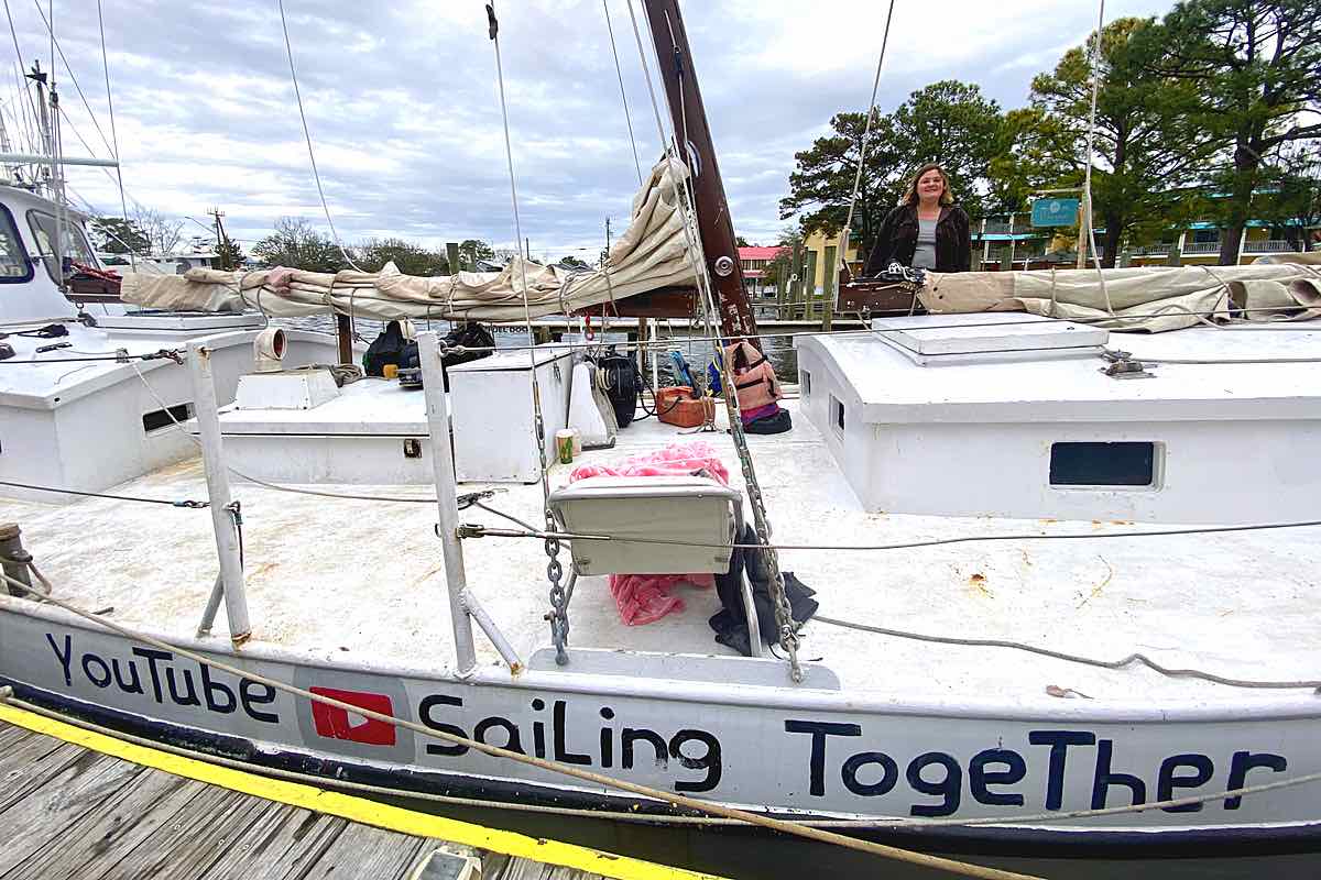 The username “Sailing.Together” is hand-painted on each side of the steel hull with a YouTube icon. While the Jordans in no way rely on creating content for an income, they do have a few regular donors. It also helps them connect with locals who search for them online after seeing the boat in town. And it helps serve as a creative outlet for Anna.