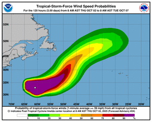 | 1500 UTC THU OCT 2 2025 | 33.2N | 59.5W | ENE | 29 | 980 | 75 |