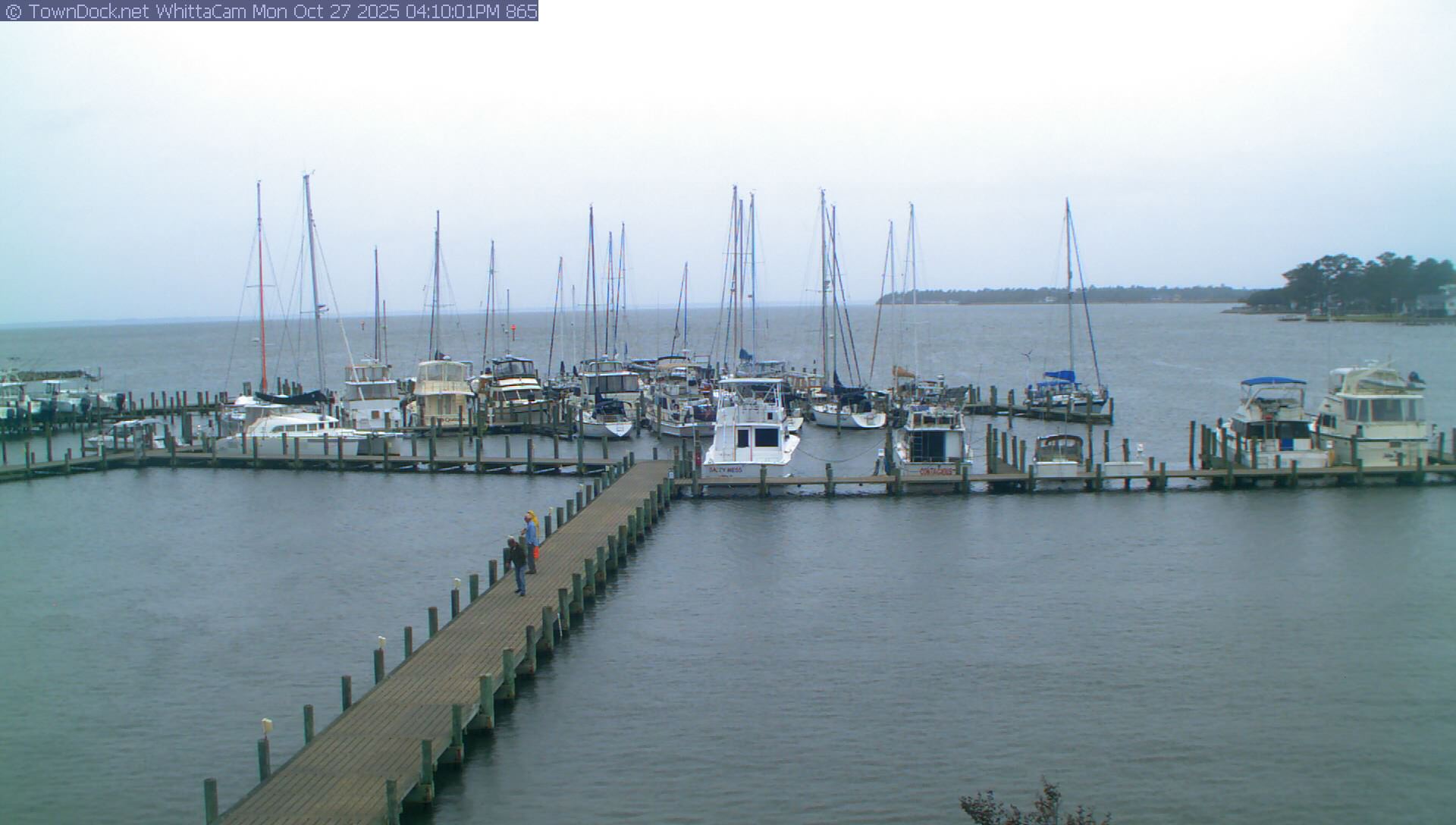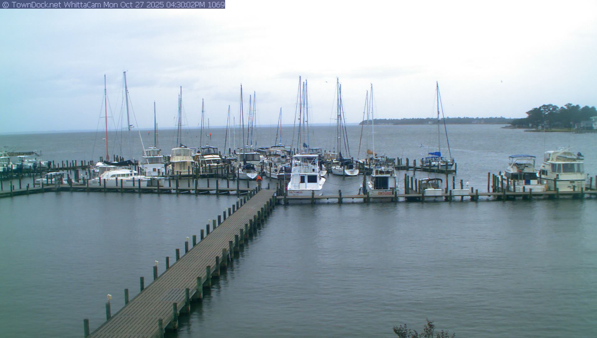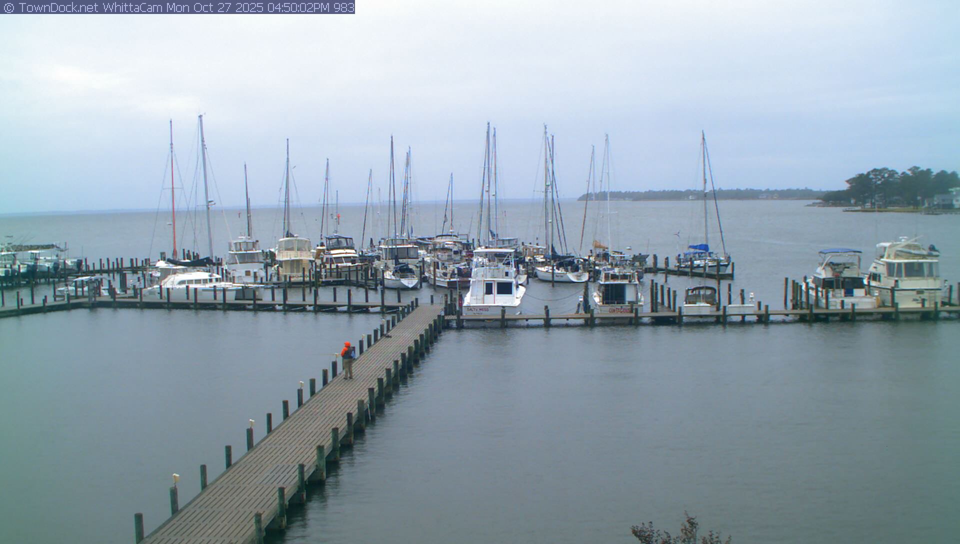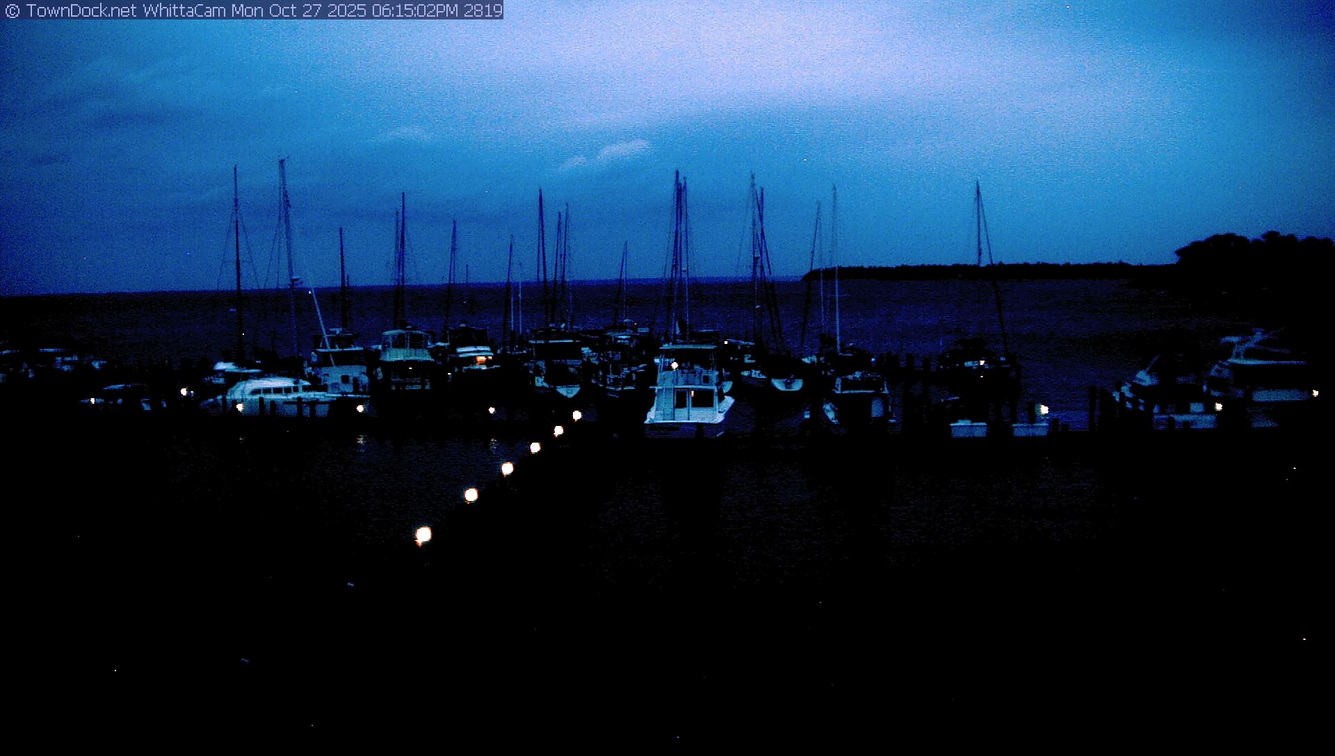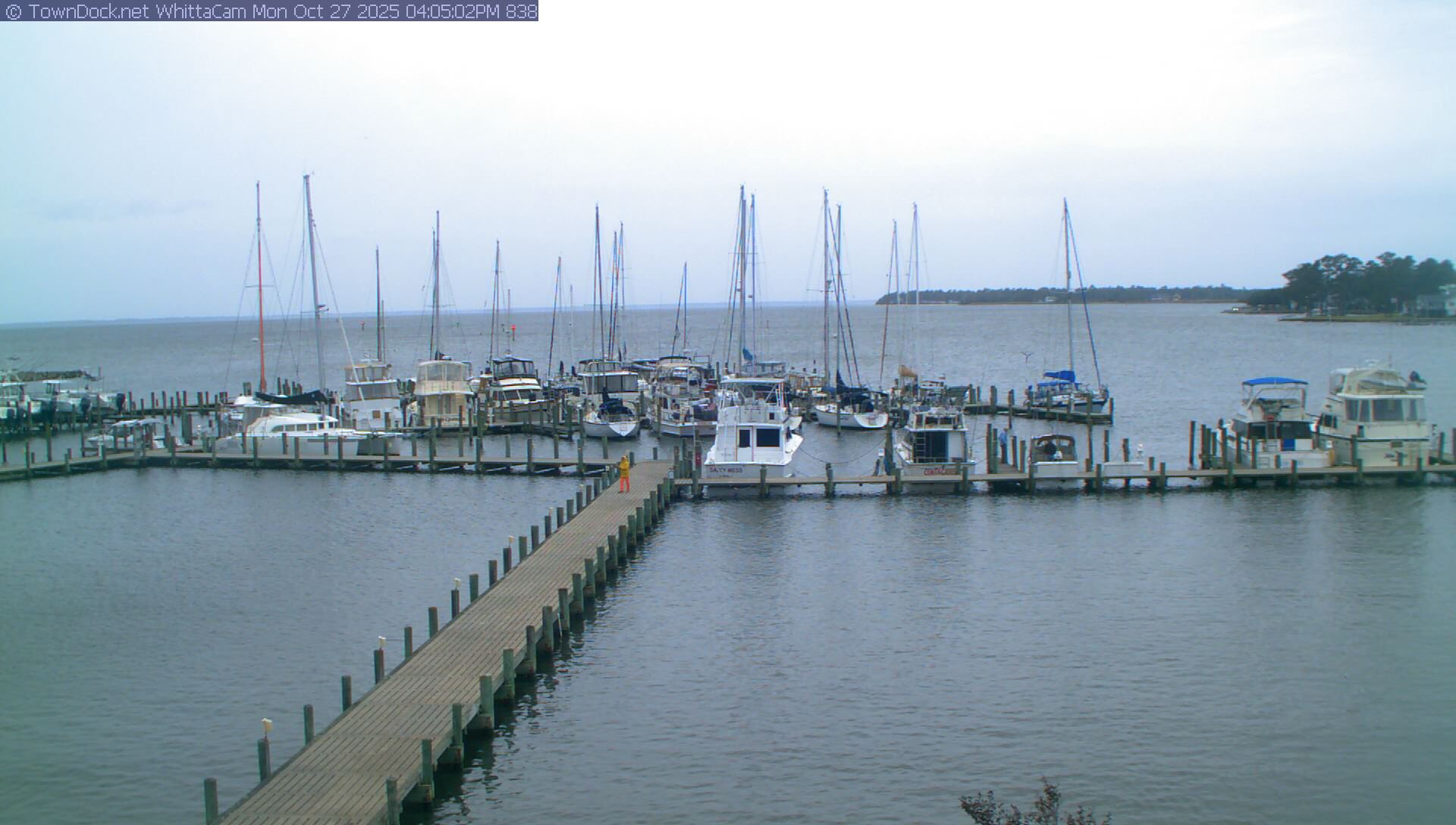 shows Whittaker Pointe Marina and the Whittaker Creek Channel entrance, with the Neuse River in the background. WhittaCam takes a new picture every five minutes from dawn til just before dusk. Click on the image to see a larger version. Once you see that larger version, you can click (see arrow at right) to go back in time and see recent photos. Harbor Cam currently takes photos from 6:30am to 6:40pm.